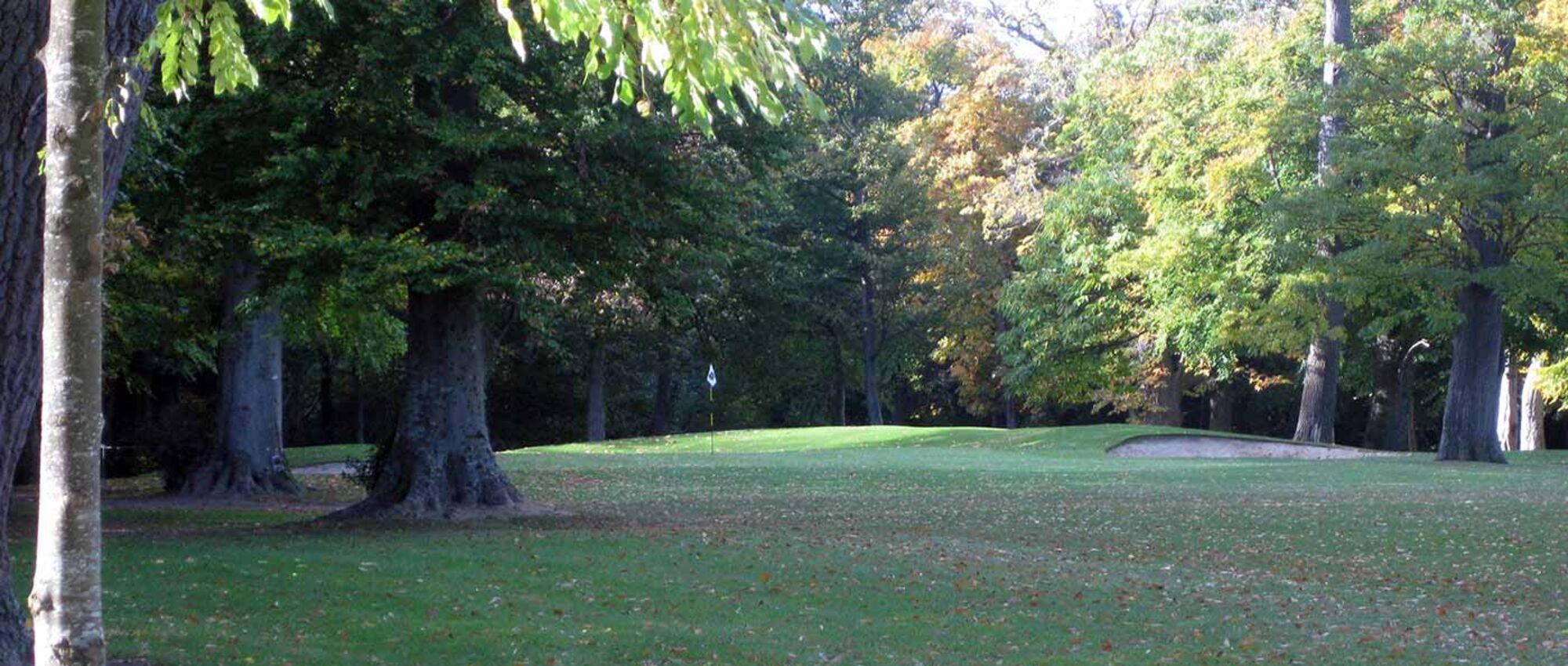 A sharp dogleg requires the tee shot to pass the bunker and trees to the left of the fairway leaving a shot through a tunnel of trees to the green.